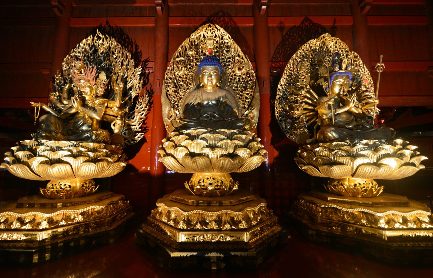 El edificio principal del templo Rinnoji también se conoce como la Sala de los Tres Budas. Como comentaba, los tres budas son Amida Nyorai, Senju Kannon y Bato Kannon: