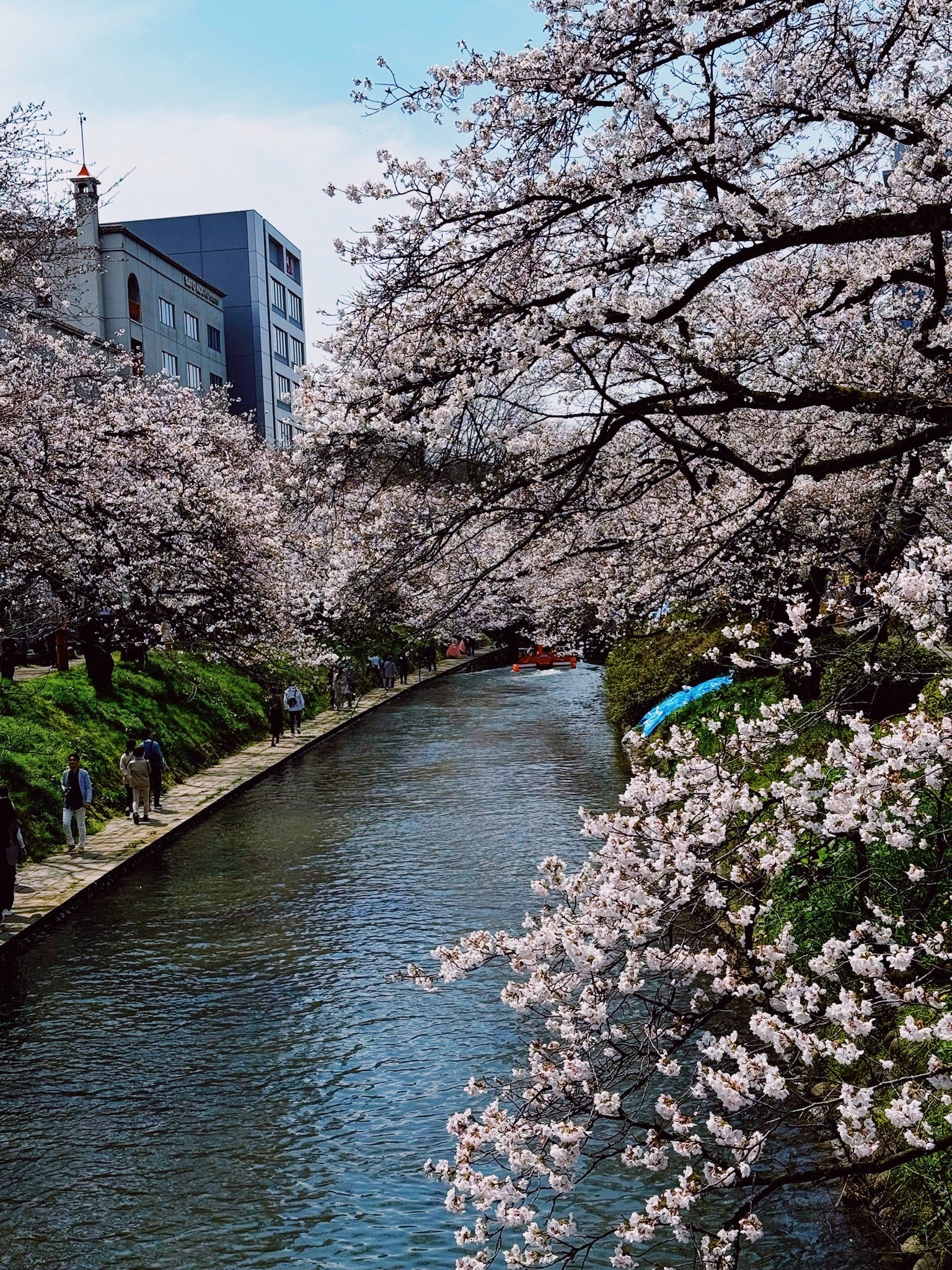 Por cierto, acabamos visitando Toyama porque se nos había olvidado reservar una noche del itinerario. Sí, exacto: no teníamos nada entre Takayama y Tokio. Como los precios eran desorbitados, elegimos una ciudad bien conectada con el tren bala. ¡Y qué bien estuvo! Fue la primera vez que vimos el famoso hanami. Hileras de cerezos en flor a ambos lados del río. Una explanada enorme. Gente jugando con los perros, tirando frisbis, haciendo picnics… Incluso vimos un partido de béisbol improvisado. Crushazo de tarde.